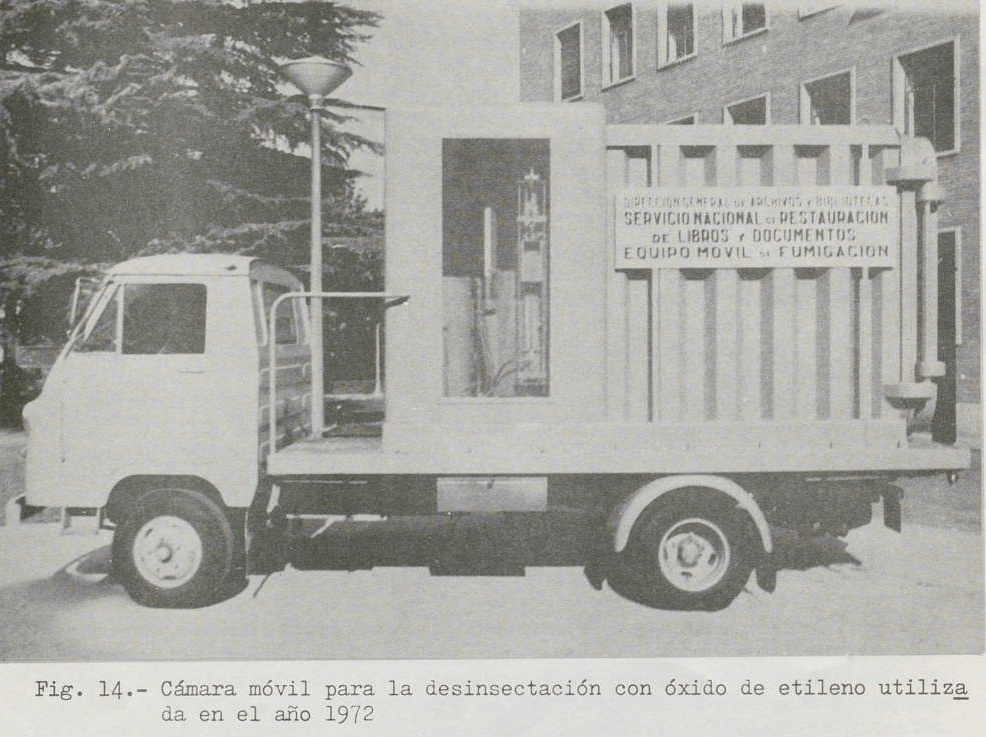 L’any 1970, es crea a Espanya, el Servicio Nacional de Restauración de Libros y Documentos, depenent de la Dirección General de Archivos y Bibliotecas. Entre final de 1971 i principi de 1972, el Servicio compra una cambra mòbil de fumigació. El primer servei el van fer a la Biblioteca del Seminari de Múrcia i després a la Biblioteca de la nostra Universitat.